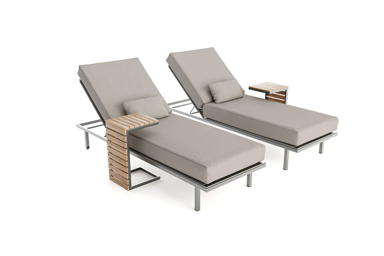 Designerskie leżaki ze stali nierdzewnej Baki ze stolikami bocznymi dostępne tylko w Living Zone. Darmowa wysyłka.