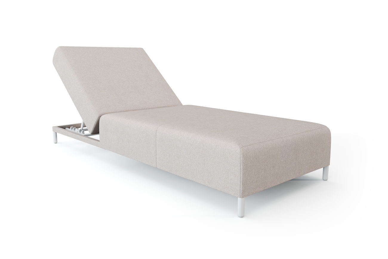 Matowa, biała aluminiowa rama nadaje temu leżakowi ponadczasową elegancję, podczas gdy pokrycie w szlachetnym beżowym kolorze kwarcu stanowi harmonijne uzupełnienie. Dzięki swoim wodoodpornym właściwościom, to arcydzieło doskonale sprawdza się w słoneczne dni i zawsze zapewnia przyjemne doświadczenie leżakowania, ponieważ materiał szybko schnie.