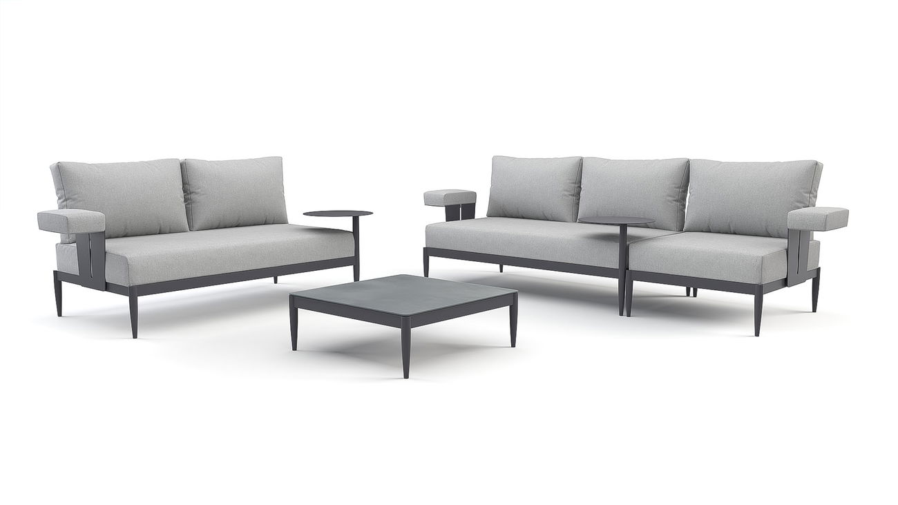 Witaj w swoim nowym raju na świeżym powietrzu z zestawem wypoczynkowym "Big Alina". Połączenie naszego popularnego zestawu sofowego "Alina" z dodatkowym wygodnym fotelem/pufem tworzy przestronną powierzchnię siedzącą dla Ciebie i Twoich gości. Rama z malowanego proszkowo aluminium w kolorze antracytowym i tapicerka w kolorze księżycowej szarości idealnie pasują do każdej aranżacji outdoorowej i zapewniają pożądany komfort. Zdejmowane i zmywalne poduszki umożliwiają łatwe czyszczenie i gwarantują długotrwałą radość z użytkowania zestawu.